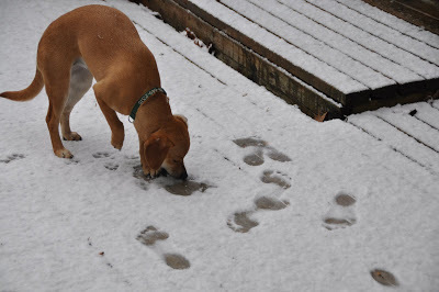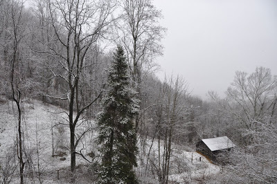 Time to take off the shoes and socks and walk in the first snow -- an old Appalachian charm to to ensure health in the coming year. Willa just wanted to eat it.