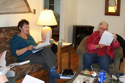 On Saturday I met in Hot Springs with most of the members of the workshop I led at Wildacres last summer. They were all eager to continue work on their books and had arranged to hire me to critique an additional twenty pages for each of them. For the past month, everyone has read and critiqued everyone else's work to be ready for this day. The group rented a house for the weekend and we settled in for a long day of work-shopping those pages.
