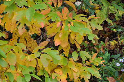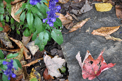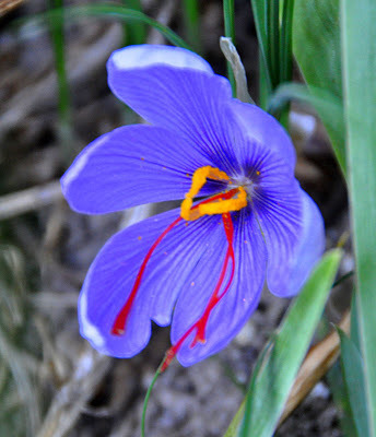 A lone Autumn crocus blooming in my entry way flower bed. See those lovely orange-red stigmas? This is a saffron crocus and it's dried stigmas like these that produce this pricey seasoning/coloring ingredient.