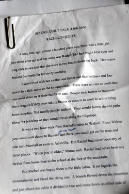 So this is what I use my grandmother's basket for -- to hold the elements of a little talk I used to do in the lower grades of our local schools, back when I was starting to be known as 'The Quilt Lady."