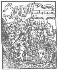 During these past weeks, the medieval allegory of the Ship of Fools has come to my mind more than once. This first image, by Hieronymus Bosch (c. 1490-1500) is so well described by the Web Museum that I'm just going to quote:"In The Ship of Fools Bosch is imagining that the whole of mankind is voyaging through the seas of time on a ship, a small ship, that is representative of humanity. Sadly, every one of the representatives is a fool. This is how we live, says Bosch--we eat, drink, flirt, cheat, play silly games, pursue unattainable objectives. Meanwhile our ship drifts aimlessly and we never reach the harbor.