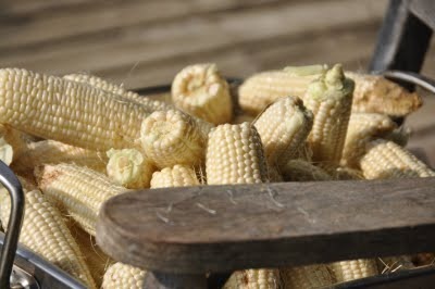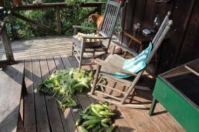 A canning house was once a common addition to farms around here -- a way to keep the heat of canning (often on a wood stove) out of the house during the summer. This fine example, which sits across the street from our driveway, even has a cellar to store the canned goods.I don't have a canning house -- and I really don't want to use a wood stove in this summer heat. But the kitchen still get horribly hot, even with the gas range, even with a fan going.