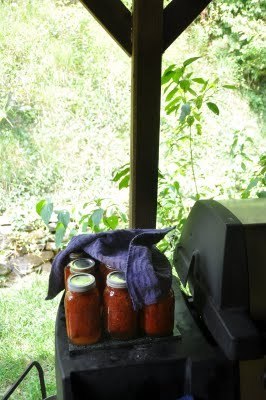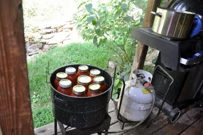 Forty-five minutes of a boiling canner and several hours of cool down for the jars afterward -- all done outside! This is the way to go!