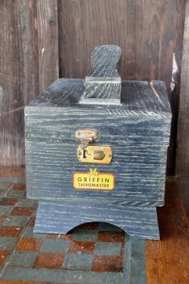 I dug around in my closet and unearthed this swell little shoeshine box -- inherited from my grandfather.