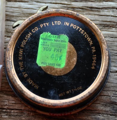 Most of these tins of shoe polish from the shoe shine kit are pre-bar code vintage -- possibly inherited with the kit, possibly leftovers from the Marine Corps days.