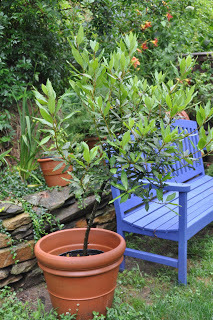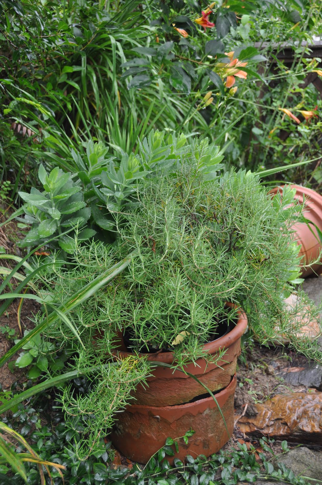 The bay laurel and rosemary are in pots, as they must winter over in the greenhouse.