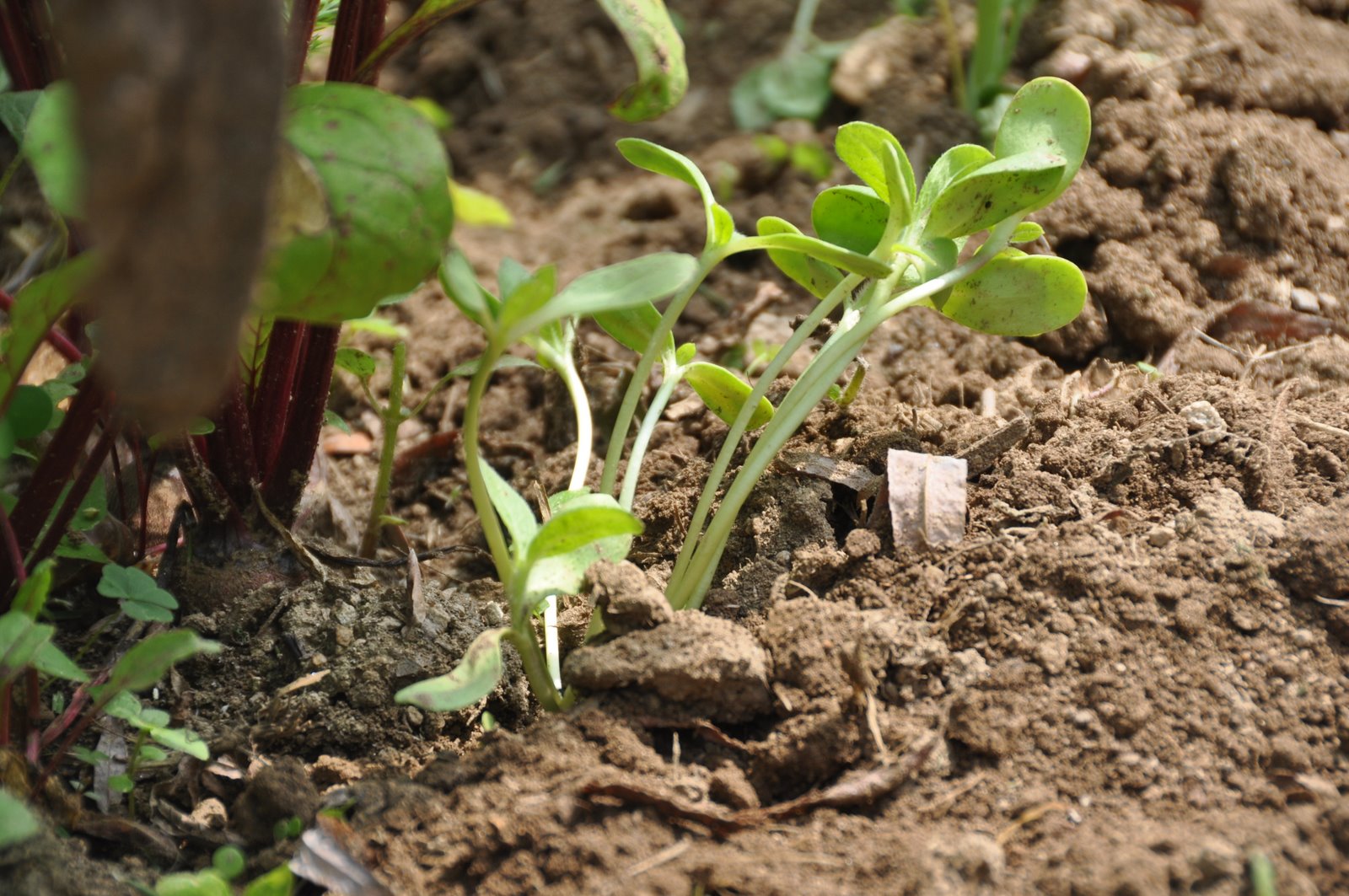Chipmunks have planted sunflowers for me here and there. I'll thin this clump down to two.