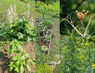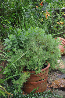 But I was determined at least to have a herb garden -- parsley, sage, rosemary and thyme -- as well as dill, rue, lovage, tarragon, fennel, basil, oregano, pineapple sage, cilantro, catnip,, bay, pineapple sage, perilla, and clary sage ...