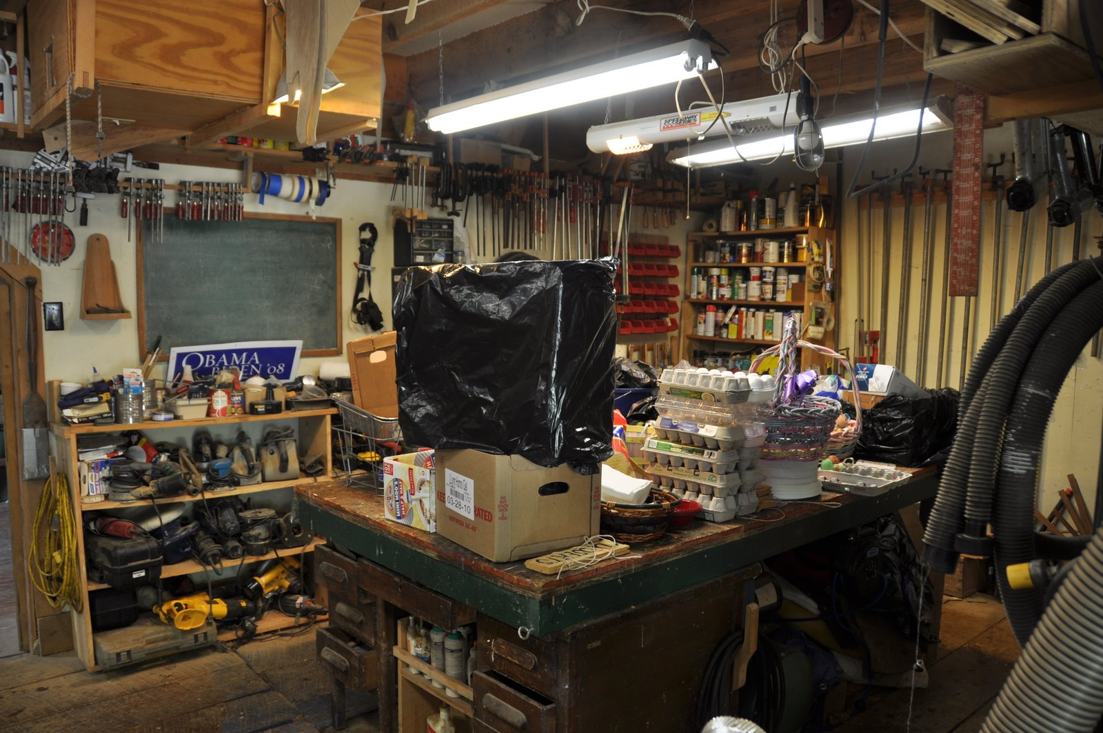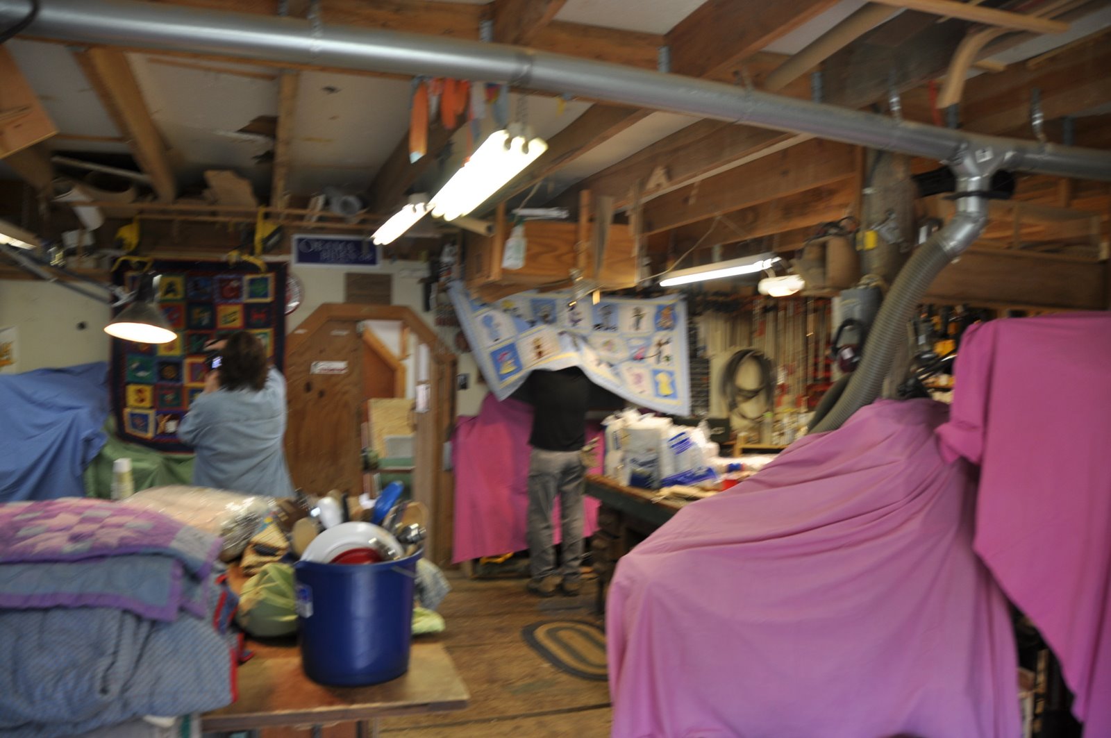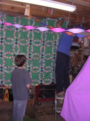 . . .is empty. Time to pull down the crepe paper, fold up the quilts . . . Time to inventory leftover plates, cups, and party necessities; to make a shopping list for next year's party (more balloons); and to return the wood working shop to its true purpose. . .