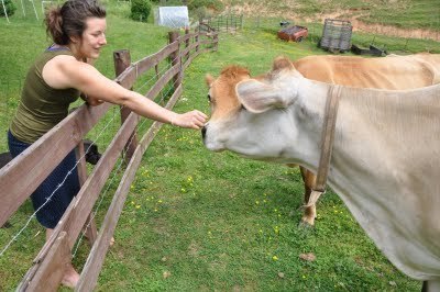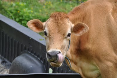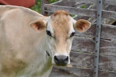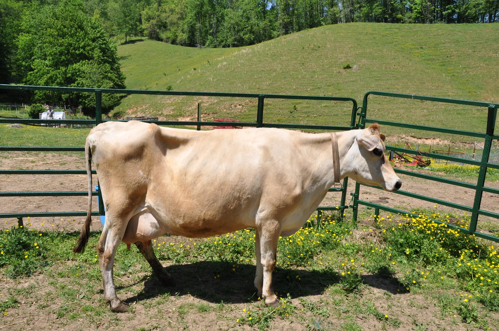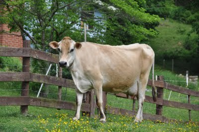 This is a used cow, unlike Marigold who we raised from a heifer. Silverbell is a Jersey from Yellow Branch, the same small dairy herd as Marigold. She was born six years ago at this time of year when the wild silverbell trees were in bloom.