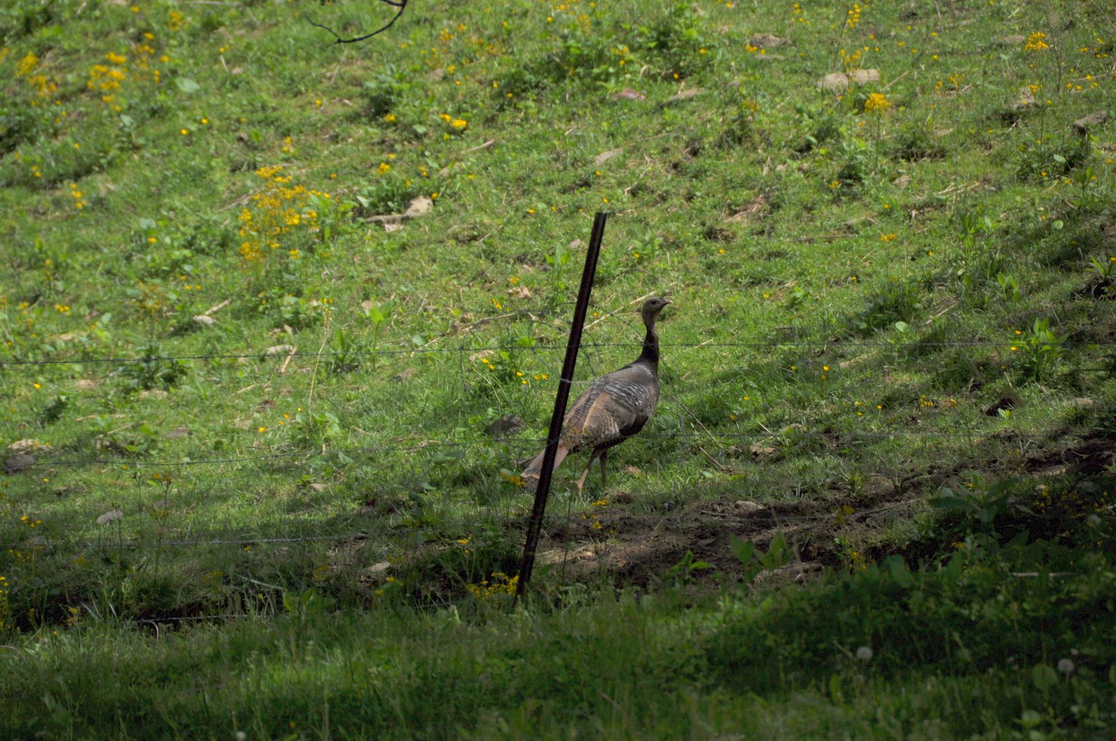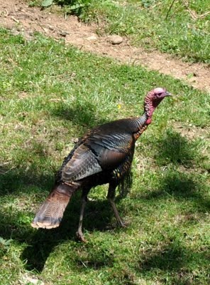 A flock of about fourteen turkeys was wandering around our barn yesterday, I managed to get a picture of this handsome fellow as I was on my day down the road to meet our new milk cow. A second milk cow. . . Justin has dreams of cheese-making ,... I think we need some pigs.