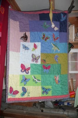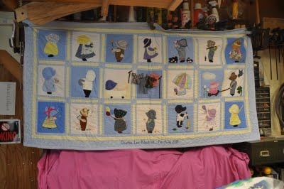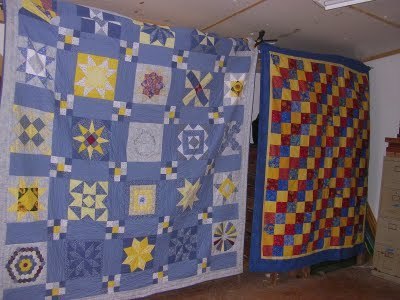 As time went on, the quilt making slowed. Not so many babies and lots more distractions to keep us from quilting. But we'd gotten used to seeing quilts up at Easter -- they're a nostalgia trip and they make the woodworking shop look festive.