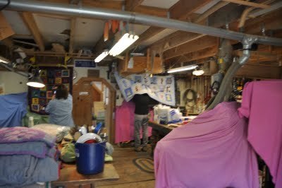 These days, the quilts tend to be a mix of our community quilts -- old and new, antique family quilts, collected quilts, solo quilts I or my friends have made, and even (blush) a few store-bought quilts from China. (There's one in the background of the first picture.)