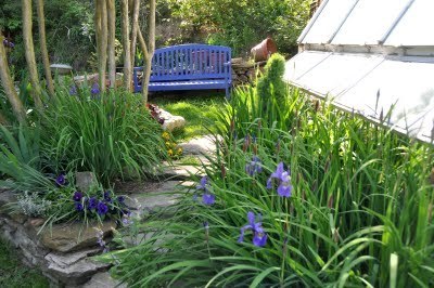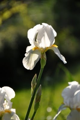 A perfect day -- sunny, clear, and cool. The white irises are illuminated and even the trees sparkle in the sun.