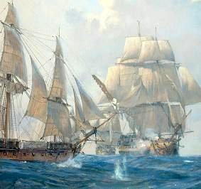 (Book cover illustration and sea battle painting by the renowned marine artist Geoff Hunt)