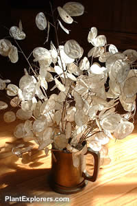 When the seed pods dry, you can peel off the outer coat to find the seeds and the shiny interior membrane.