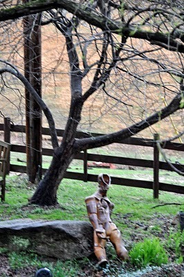 This strange sight across the road from our chicken house caught my eye Thursday and for a minute, I was bumfuzzled -- it looked metallic but where had it come from and who put it there and what in the world was it?All at once I remembered a long ago episode (Amok Time) of Star Trek in which the non-emotional Mr. Spock is suddenly ... umm ... in a state of rut and must return to his home planet to find a Vulcan mate.