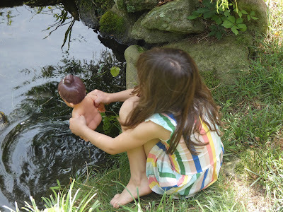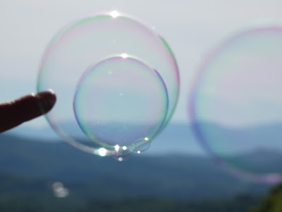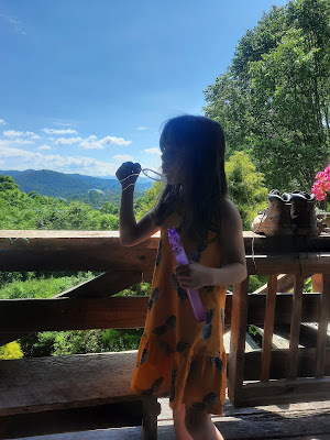 Now that school is out, I spend all day with Meema or with Grandma. On Wednesday at Meema's, I did lots of things--seeing about the Castle People while Meema made the pancakes, watering the plants, and blowing bubbles.