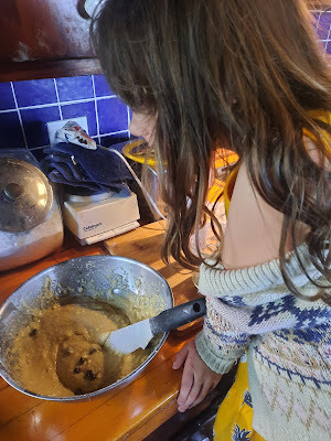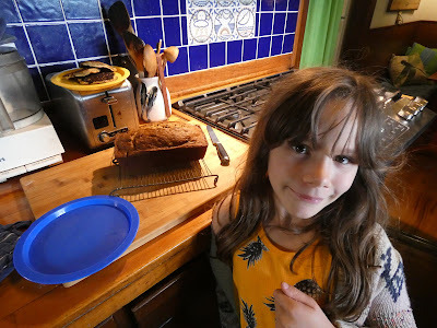 Then we made banana bread, using my great great grandmother's recipe. (I added some chocolate chips.)