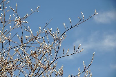 The pussy willows, white and black, are showing, leading me to think that Spring herself may be on her way to our mountains.