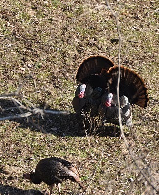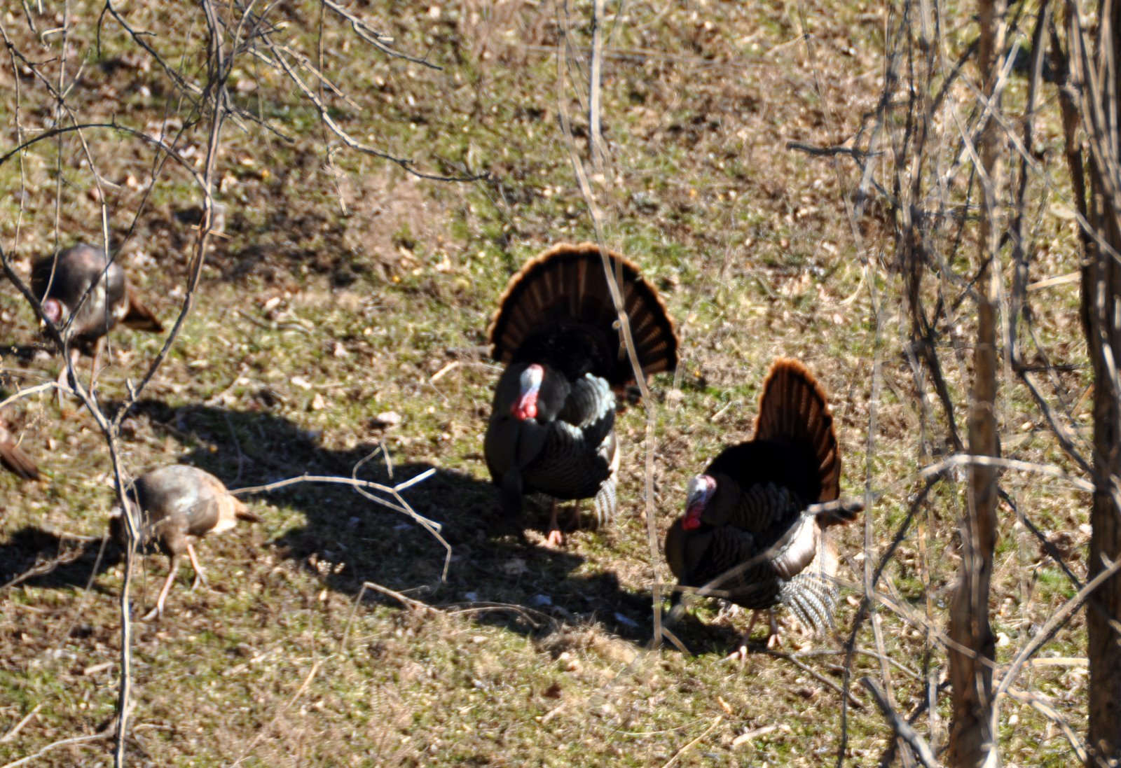 The sound of gobbling caught my attention yesterday morning and I looked out the bedroom window to see two big boys strutting their stuff,