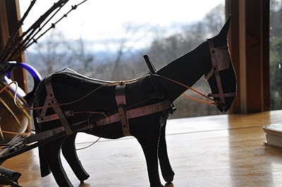 This mule and wagon were a gift from a friend who is (alas!) moving and seeking to pare down her collections.