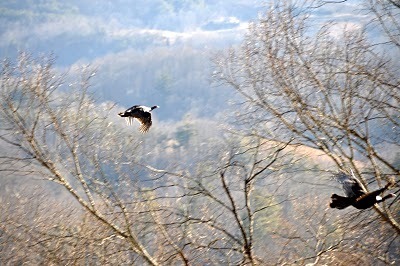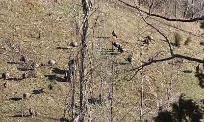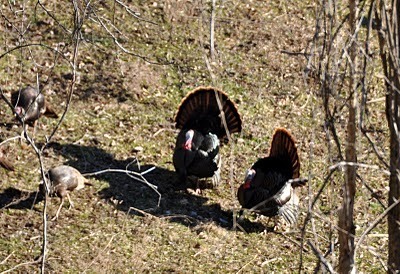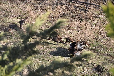 The courting gobblers were not to be deterred. They just herded their harem away from me and continued with their dance.