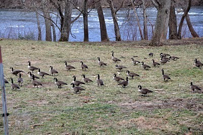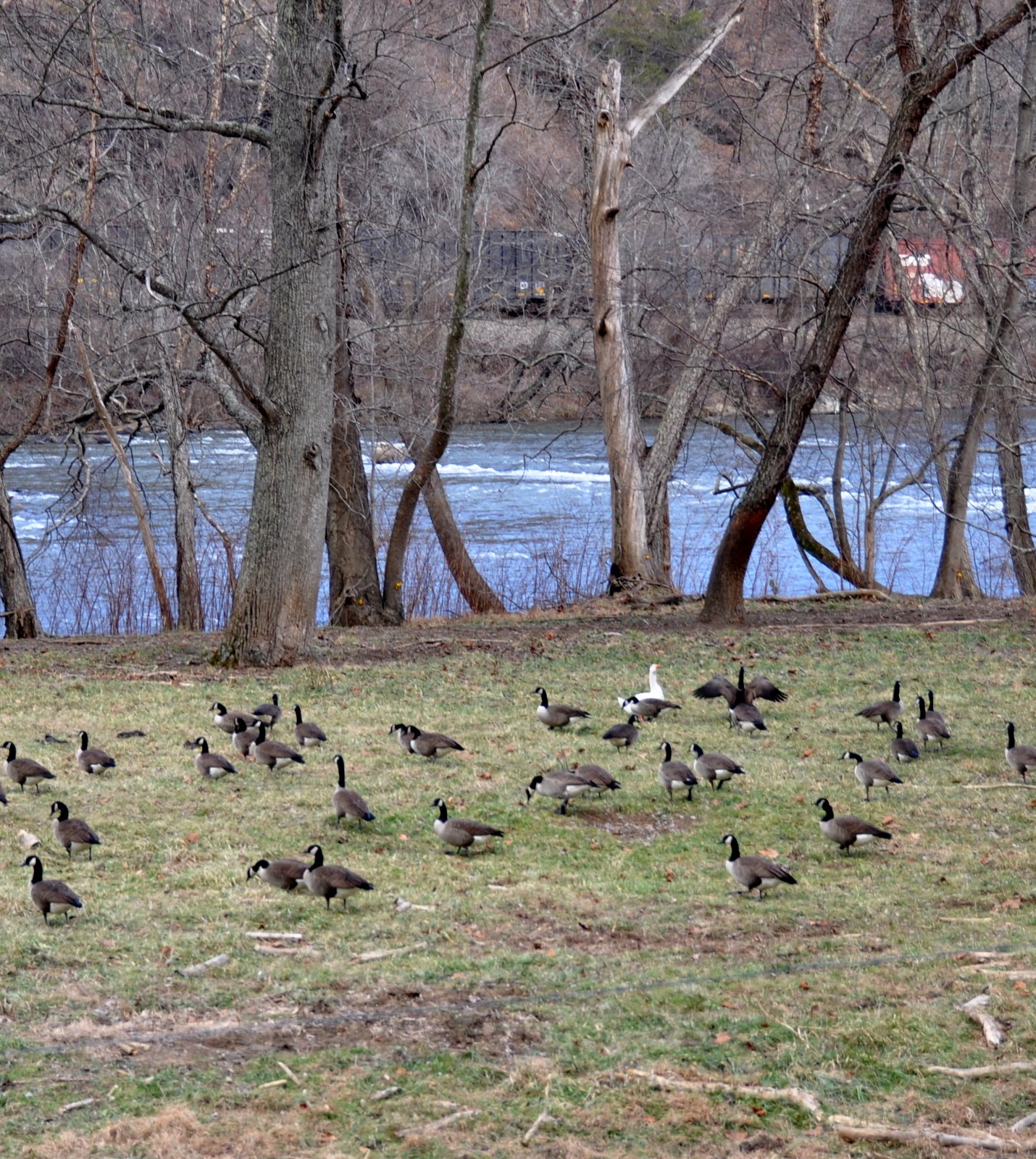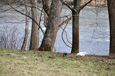 The white goose has a friend! These two were enjoying a leisurely lunch apart from the rest of the flock as I passed by on Tuesday on my way into town.