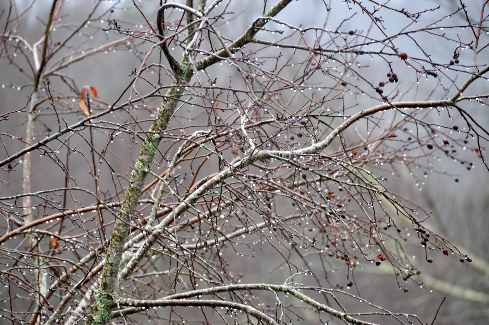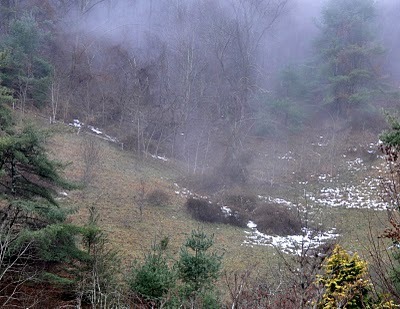 It rained all day yesterday -- a fine beginning to to the new year. Our pastures and our woods soaked up the blessed moisture as the snow melted and the soft rain continued to fall, melting the snow.