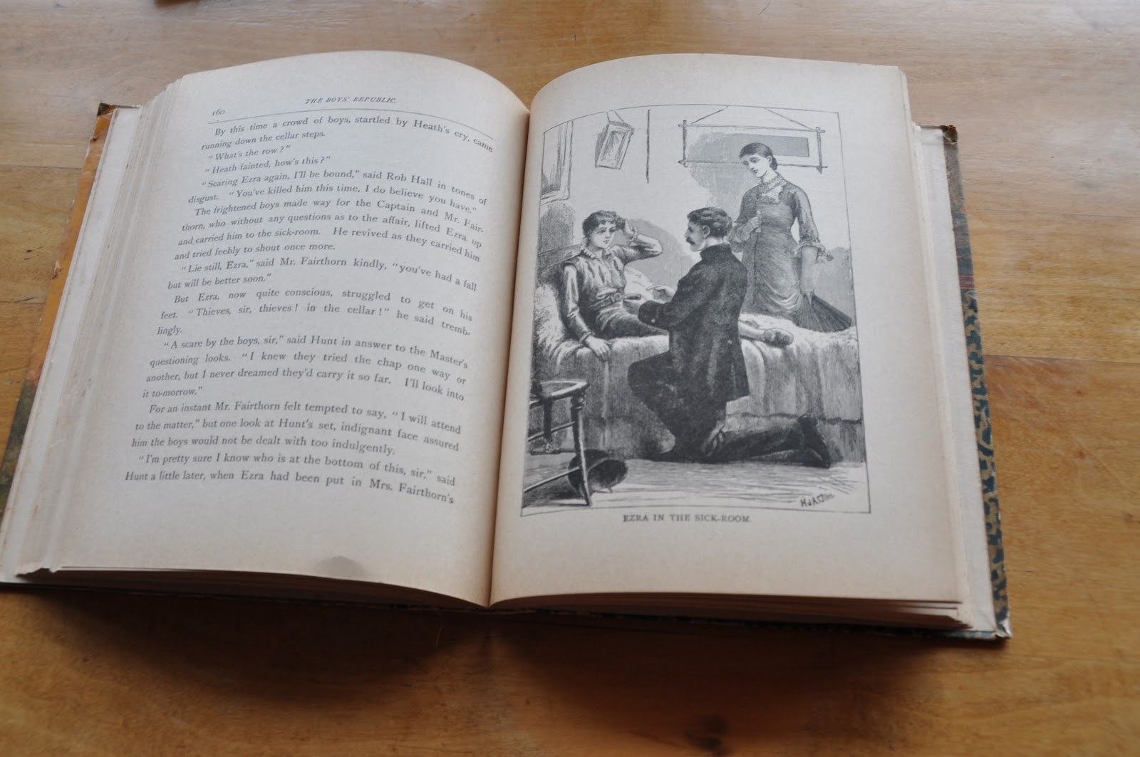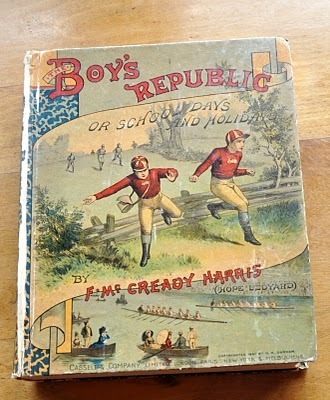My sister-in-law sent this charming old book -- copyright 1885. It's set in a boy's school that reminds me in many ways of the Plumfield of Alcott's Little Men. Most of the boys are manly little fellows and the girls are paragons of womanly virtue. It should be cloying but it isn't, at least not to me. But then I grew up reading my grandmother's old books. And it's a painless way to research the era.
