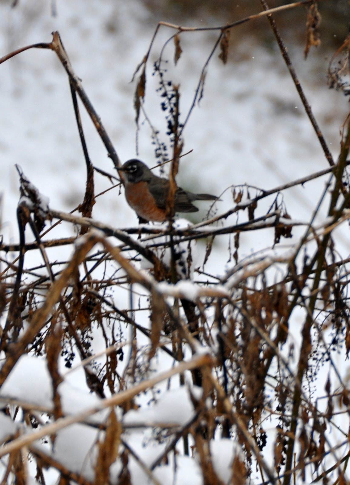 We're entering the time of year when I have to learn again to appreciate the beauty of dark skeletal branches against a gray sky . . . the orderly confusion of an abandoned nest . . .