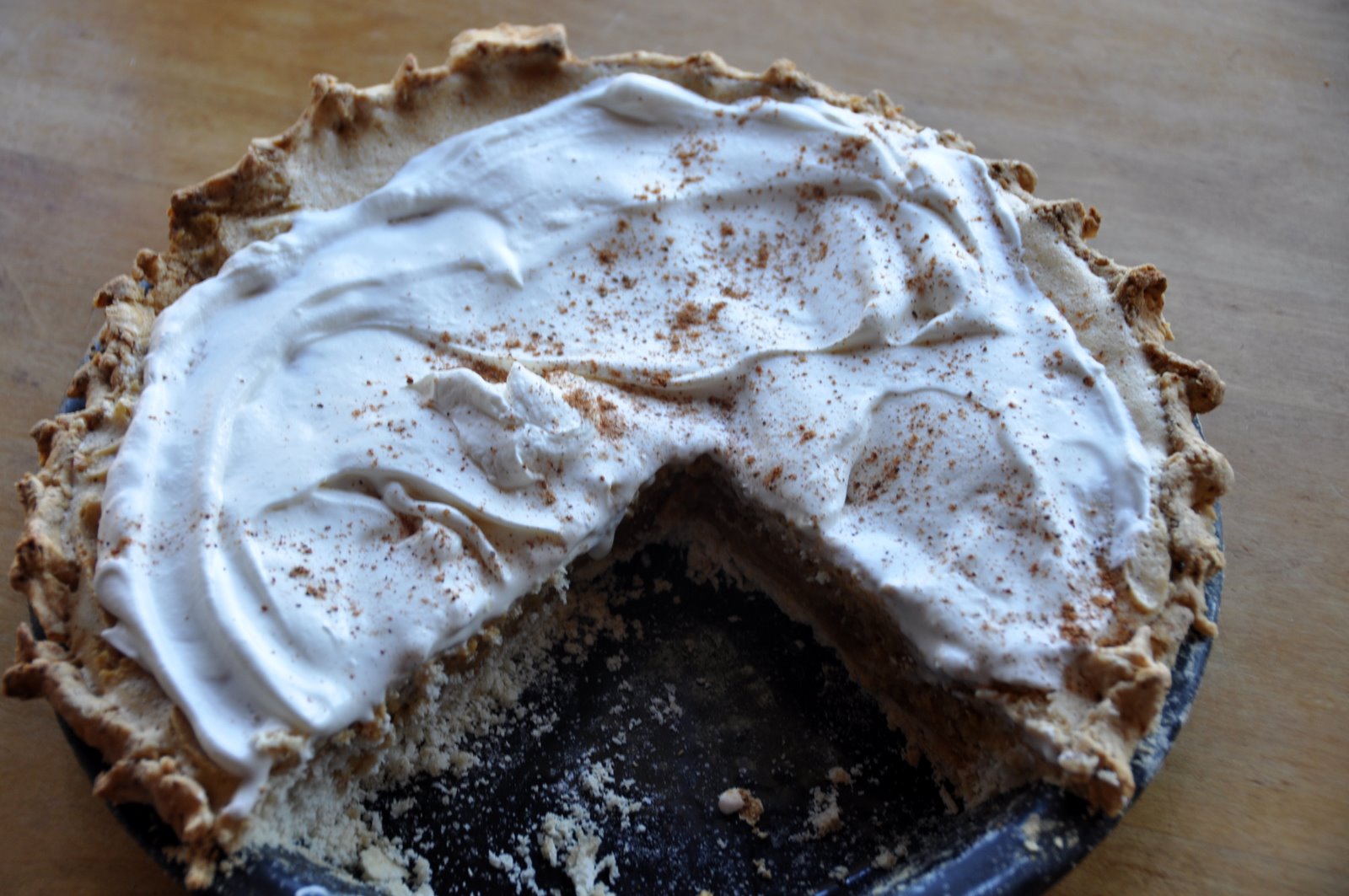 Beat egg whites till stiff but not dry. Fold into custard and cool a little bit but not till set. Whip 1 1/2 cups heavy cream, adding 1/3 cup sugar and then folding into pumpkin mixture. Chill till very thick and pour into pie shell. Chill (overnight) till set.
