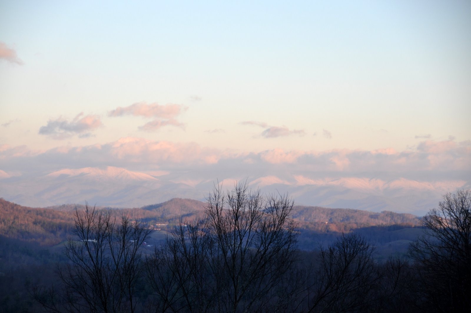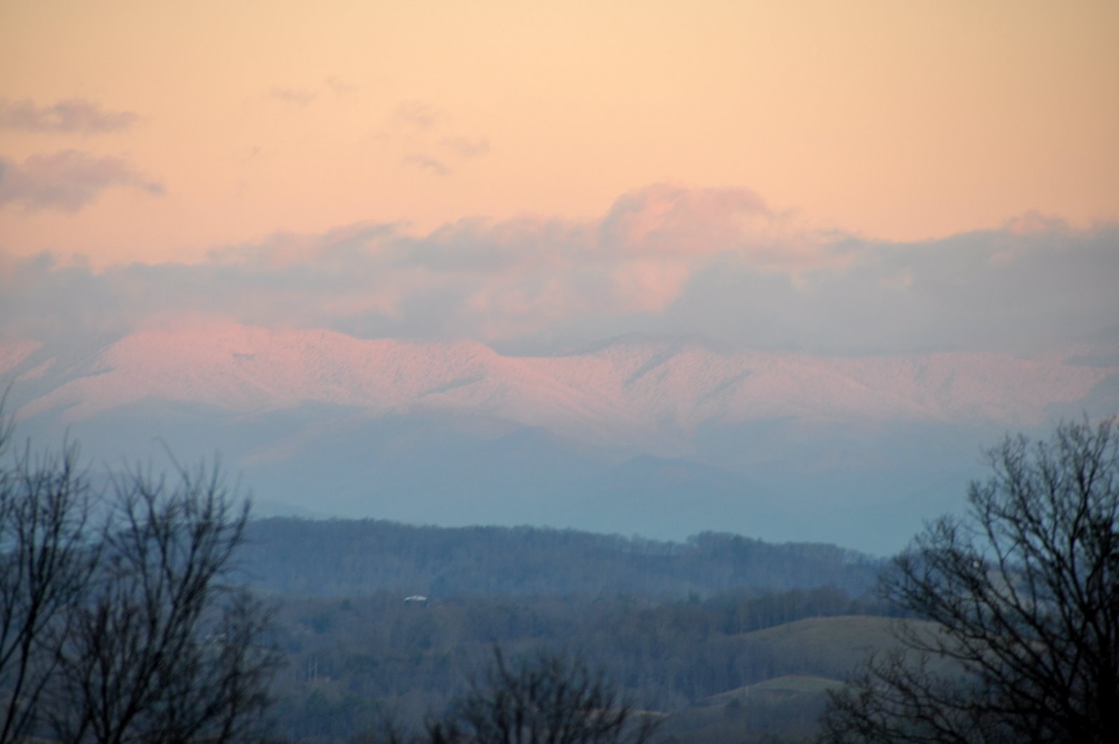 And much of the light snow had melted. But to the east, the distant Blue Ridge was still frosted and shone pink in the setting sun.