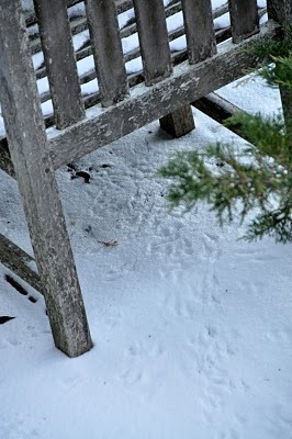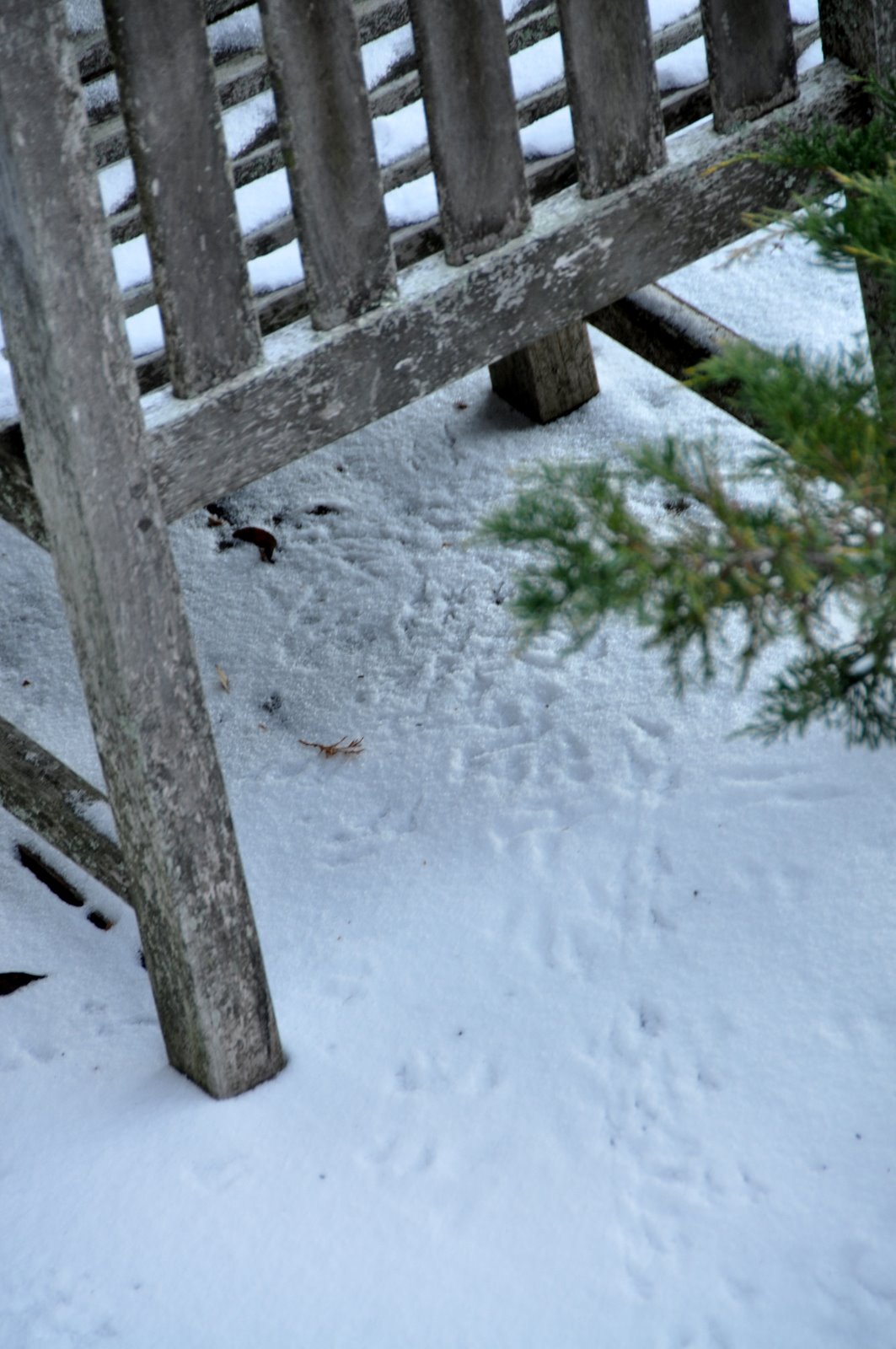 Afer a night of heavy rain we awoke to snow yesterday. By afternoon the decks had seen heavy traffic from the birds.