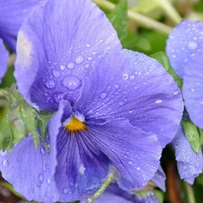 Raindrops on a pansy . . .And a gentle mist on the world outside.