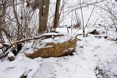 This gorgeous boulder lies at the edge of our orchard and things live under it. Possibly a groundhog or two, maybe some rabbits or there could be snakes. But whenever I see that long dark opening, I think of Little People -- not the Munchkins of Oz but the really little people - Shakespeare's English fairies small enough to use a shed snake-skin as a wrap and his elves who make jackets of bats' wings. Or maybe the Yunwi Tsunsdi.