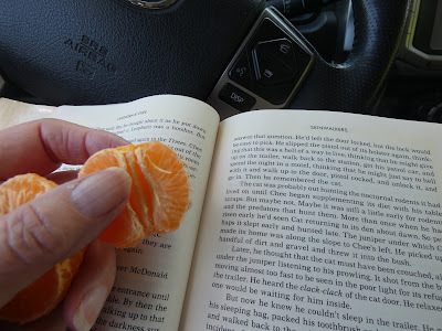 It's a pleasant day, a little warm but there's a breeze. And I have mandarins and reading material. It's a fine way to spend an hour or so. I'll miss this little ritual when school is over--Friday is the last day.