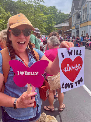 On Saturday me and my mom and dad and a friend and her mom went to Dollywood! It is one of my favorite places EVER! And this time was extra special because there was a parade and DOLLY WAS IN IT!