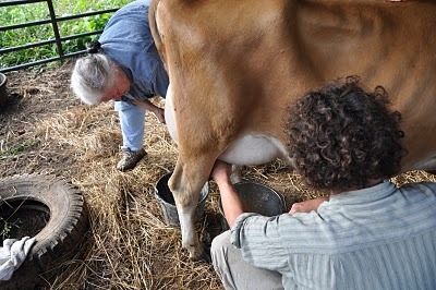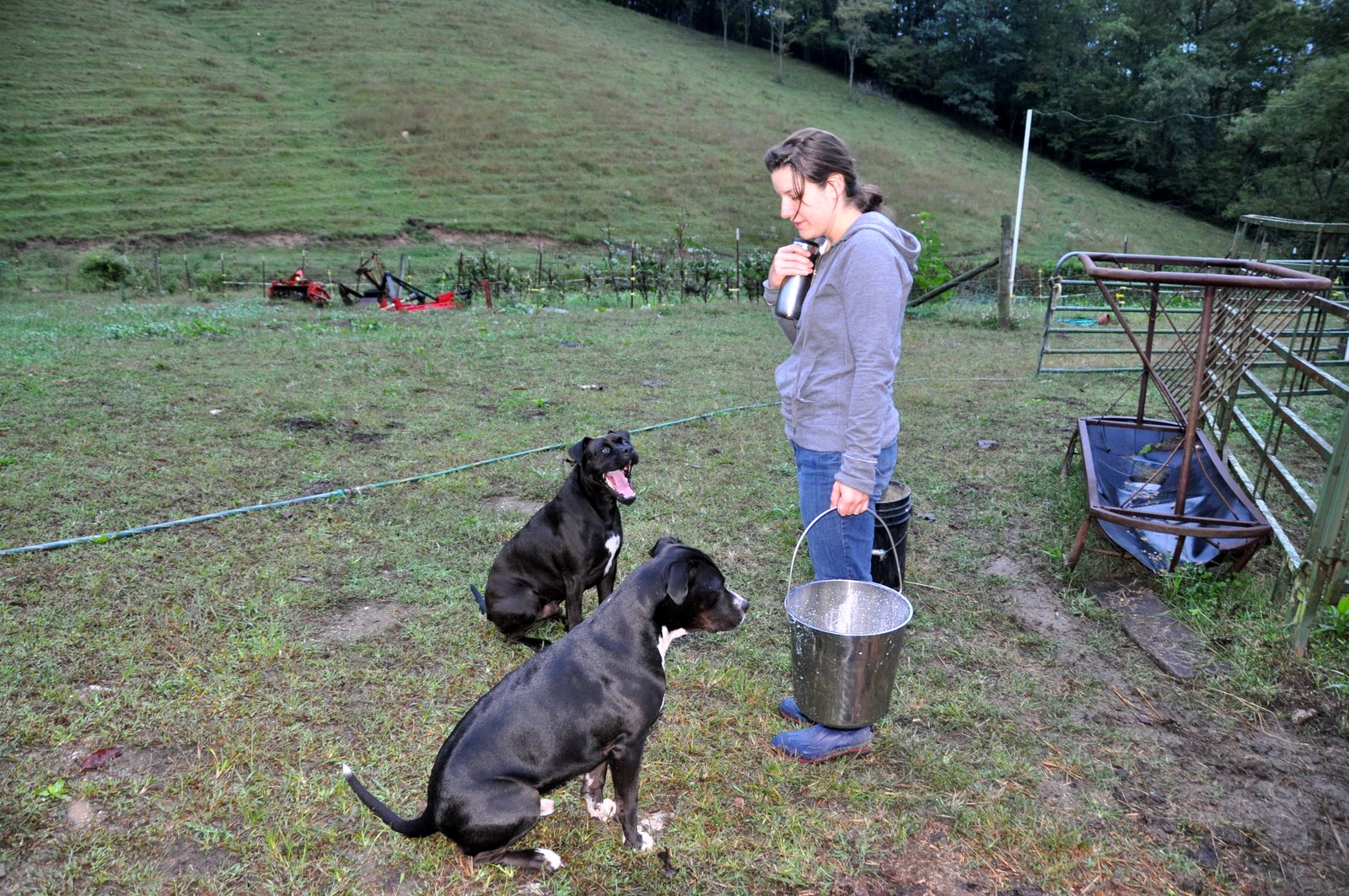 Ali Ali has watched the goings on of the past few days with unabashed disapproval. Why, he asks, is this silly cow getting all the attention? Why are my people spending all their time with her? After all, it's all about ME, isn't it?Once they got a whiff of the fresh warm milk, Ali Ali and Otis both decided that perhaps there was something to all of this cow foolishness. Now if Claui would just set that pail down so a dog could get his face in it . . .