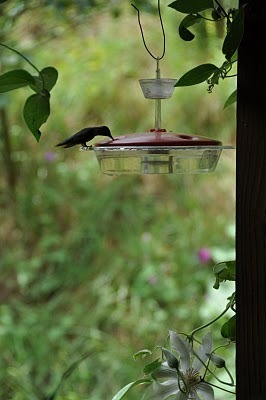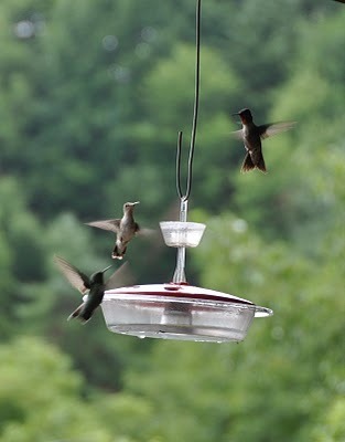 Our summer visitors -- the hummingbirds -- are busier that ever at the feeders, draining them by early afternoon. I suspect that their first hatchlings are now a-wing, thus the increased demand.