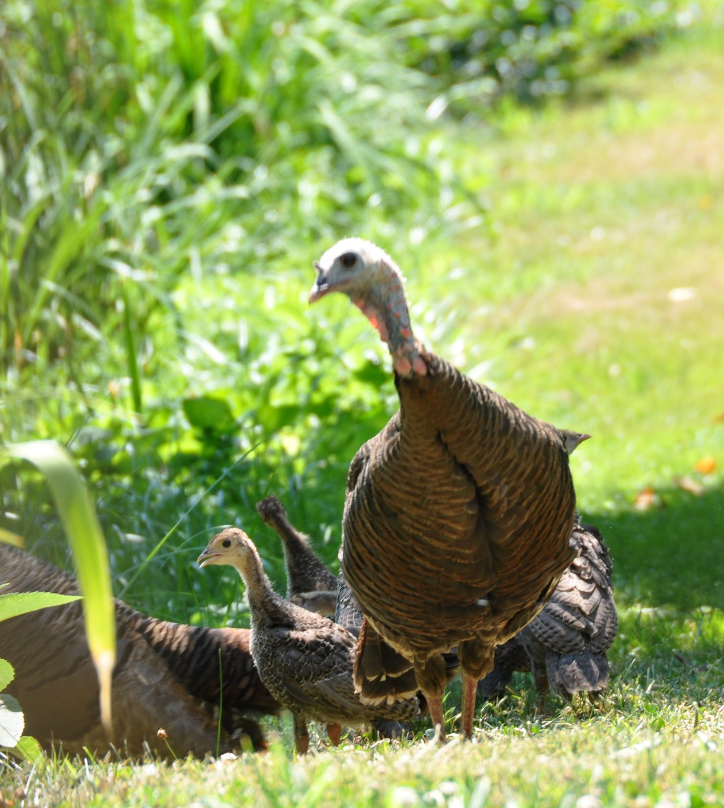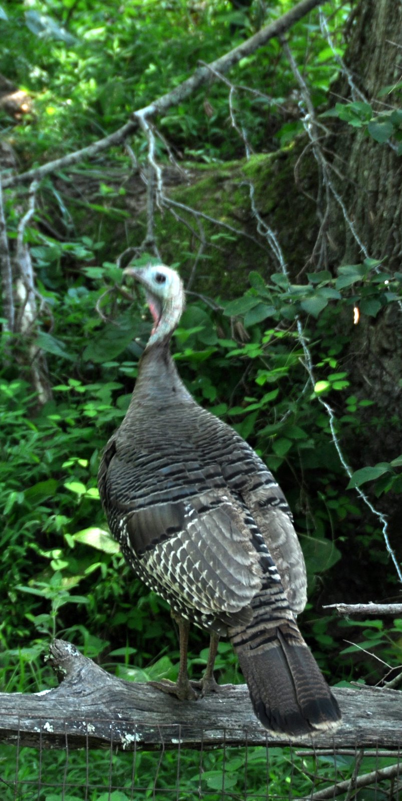 . . . the turkeys' soft dark eyes . . . the precisely patterned plumage . . .the elegant curve of her neck . . .