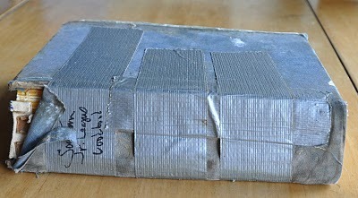 Now there's a cook book that's seen some use! It was given to me by my in-laws for Christmas in 1978 and I've made many a fine dish from it. Note the classy duct tape holding it together.