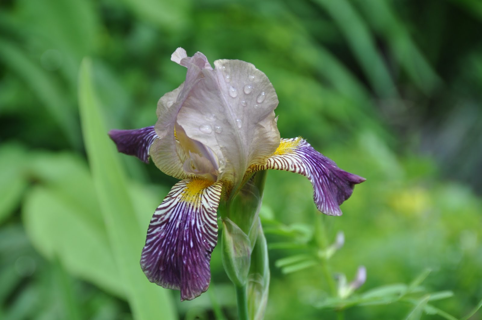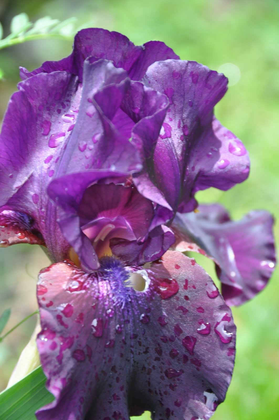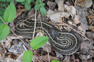 The days aren't long enough for all I want to do -- just a few quick pictures here: a bearded iris and a shy garter snake like a folded ribbon . . .