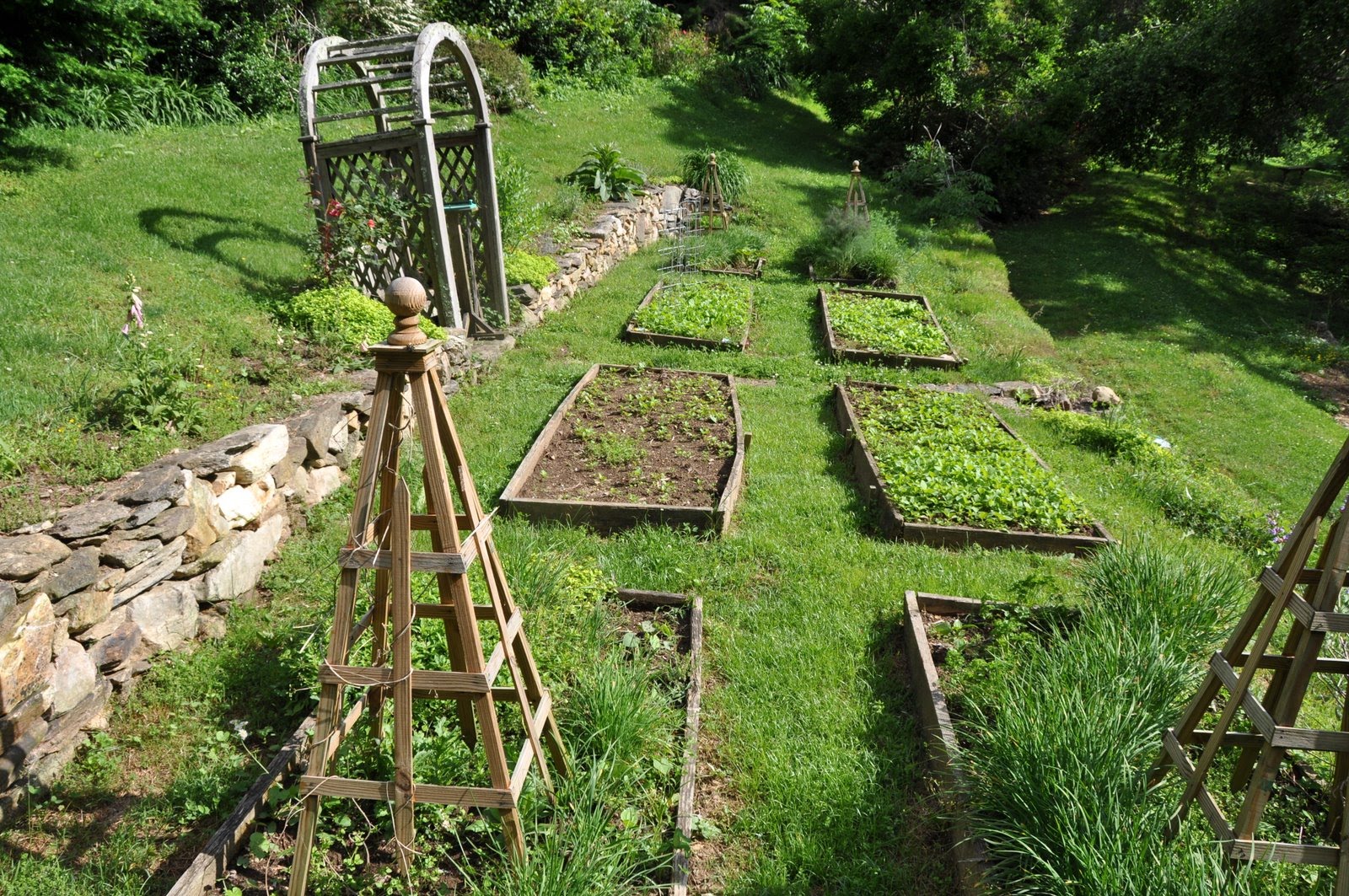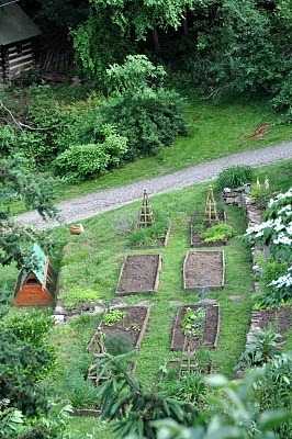 I planted snow peas along that wire support weeks ago but not a single one did I see. There were, however, quite a few volunteer tomato plants -- I'll take what I can get!