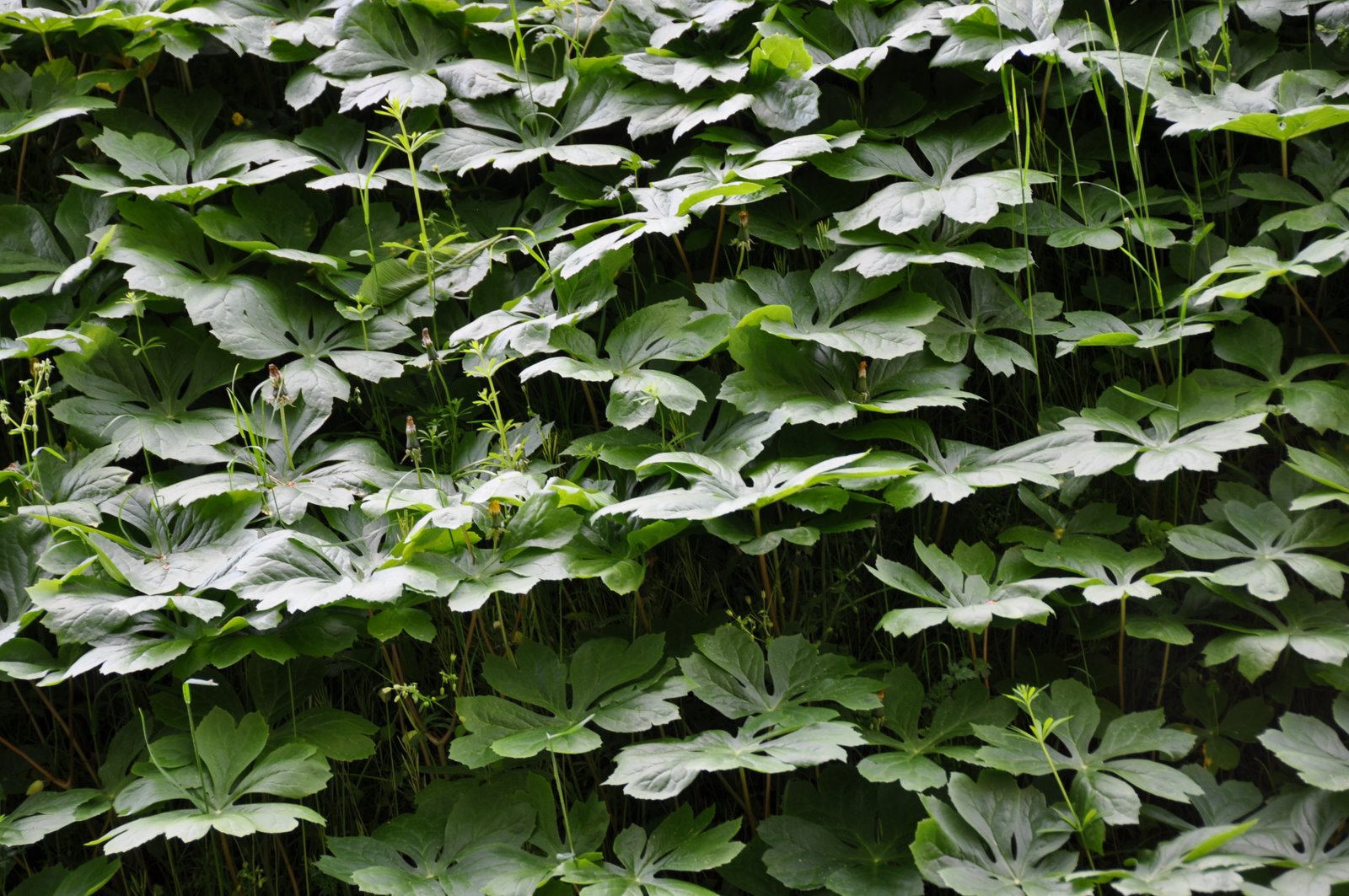 Just as tempting was a mass of mayapples, growing on the bank of the road up to our house. . . and the tree peony's first bloom, greeting me as I got out...