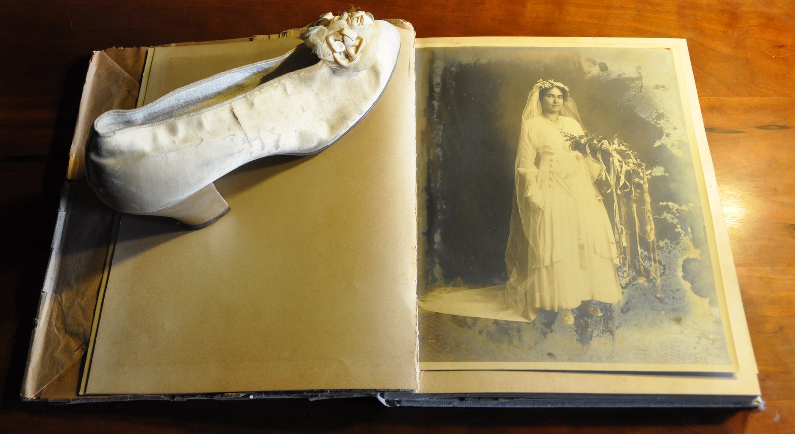 My maternal grandparents were married on October 20, 1915 in Troy, Alabama. I've posted about them before -- when they were courting and pictures of my grandmother with her sisters. I have, stored away in a chest, my grandmother's wedding dress. One of her wedding slippers is on display in a cabinet of family treasures.