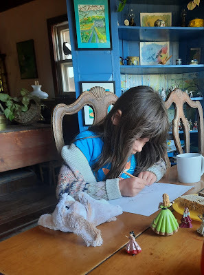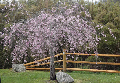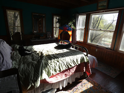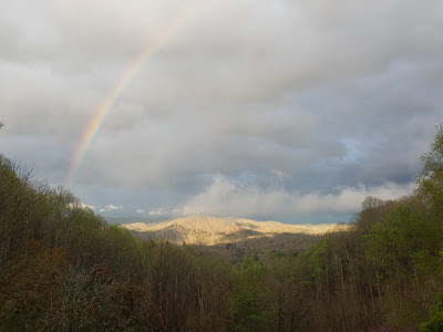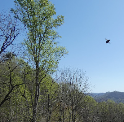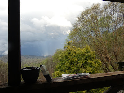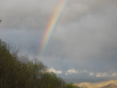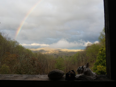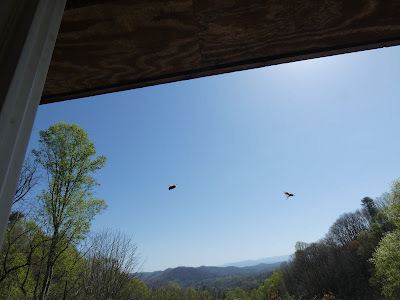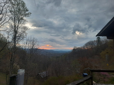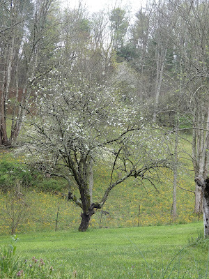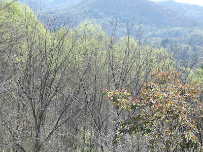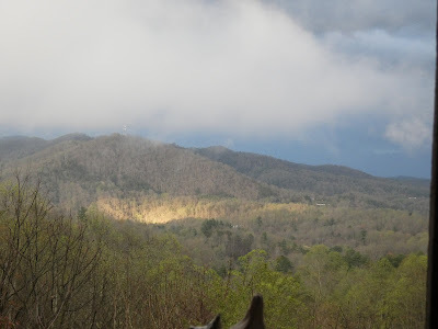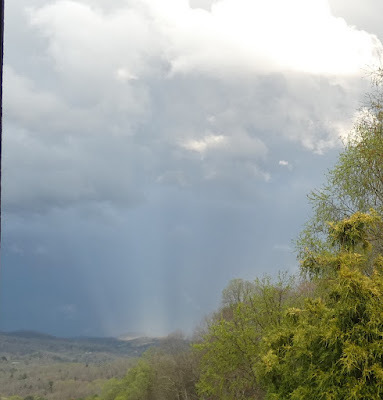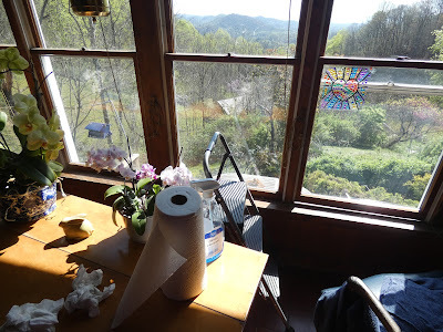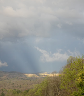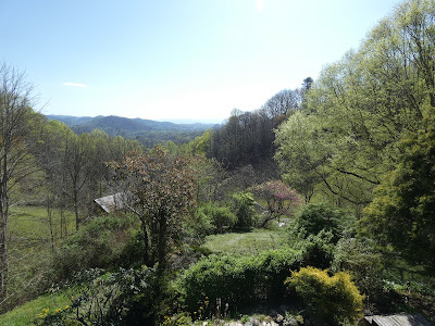 And then there's the view--all those trees in their feathery spring green against the blue-purple of the farther hills.