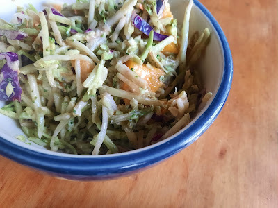 But the best part of the meal was the broccoli slaw with a ripe, sweet mango cut up in it. An amazing pairing.