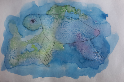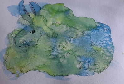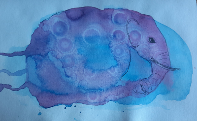I was experimenting with watercolors--especially with adding texture by dropping salt or drops of alcohol onto the wet paint, when these critters emerged.