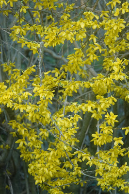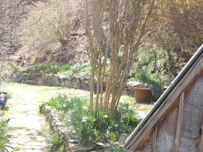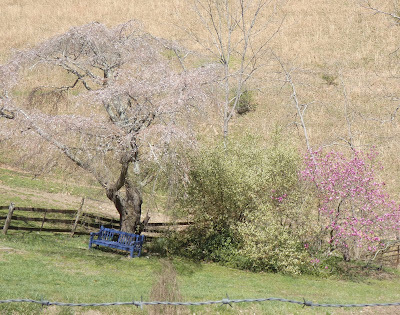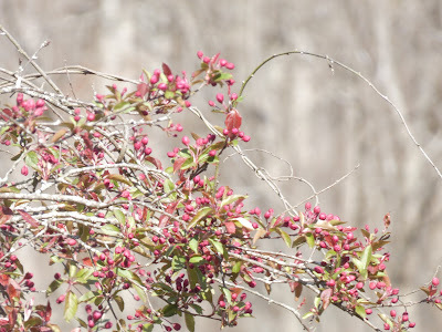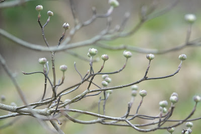 It looks like the weeping cherry got nipped by the freezing temperatures a few nights ago. But the Oriental magnolia seems to be holding on.